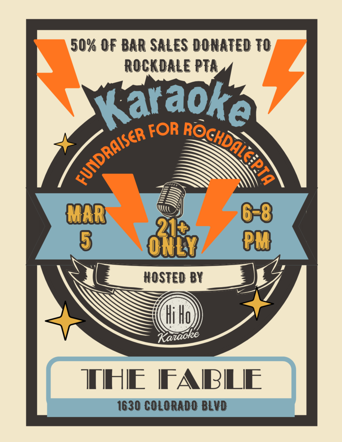 Join us Thursday, March 5 at The Fable on Colorado for an night out that gives back! Come for the community, stay for the karaoke and drinks at this 21+ adults night out.