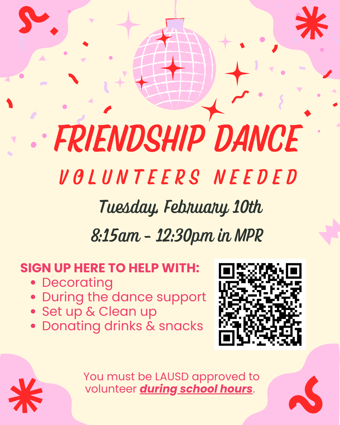 The annual Friendship Dance is supported by (LAUSD approved) volunteers and donations from our community! This school day event is a lot of fun for students and you make it possible!